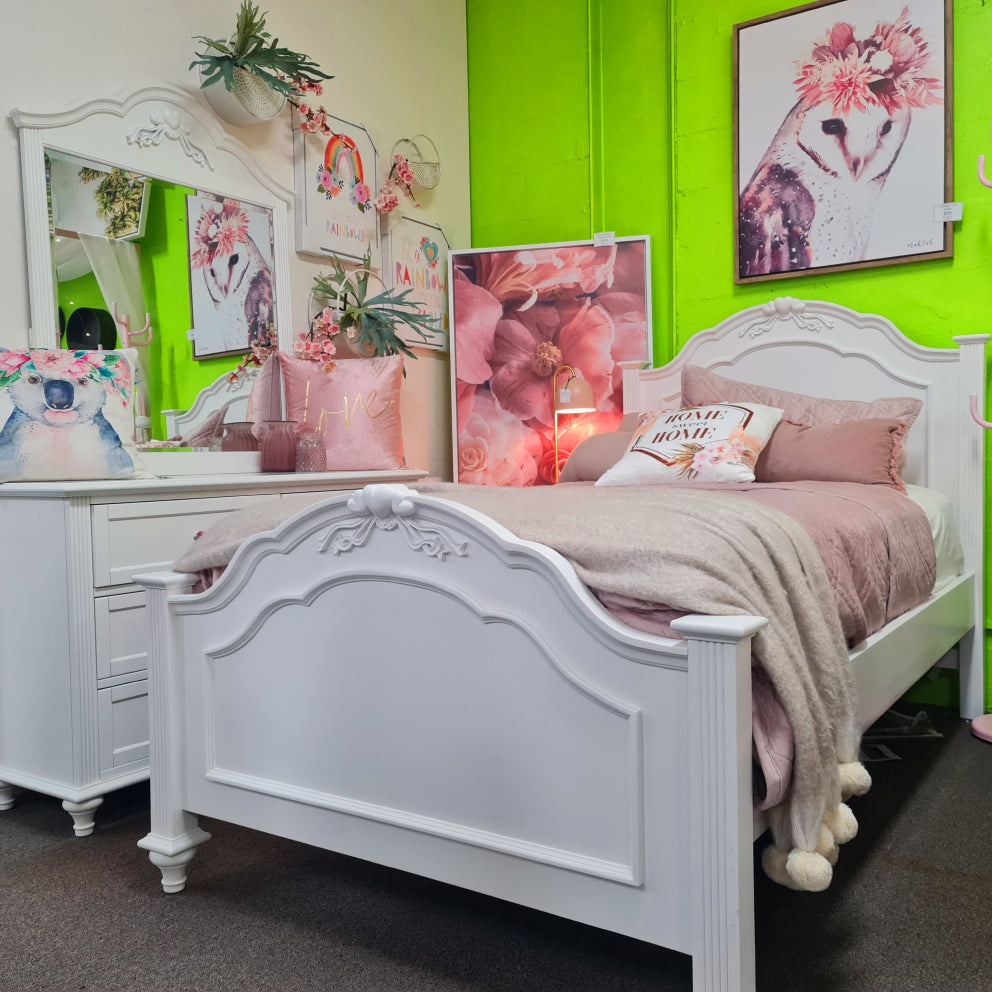 Introducing our Princess collection, a breathtaking blend of old-world charm and soft modern aesthetics, presented in an elegant antique white finish. We invite you to make our enchanting pieces a part of your little princess's world.