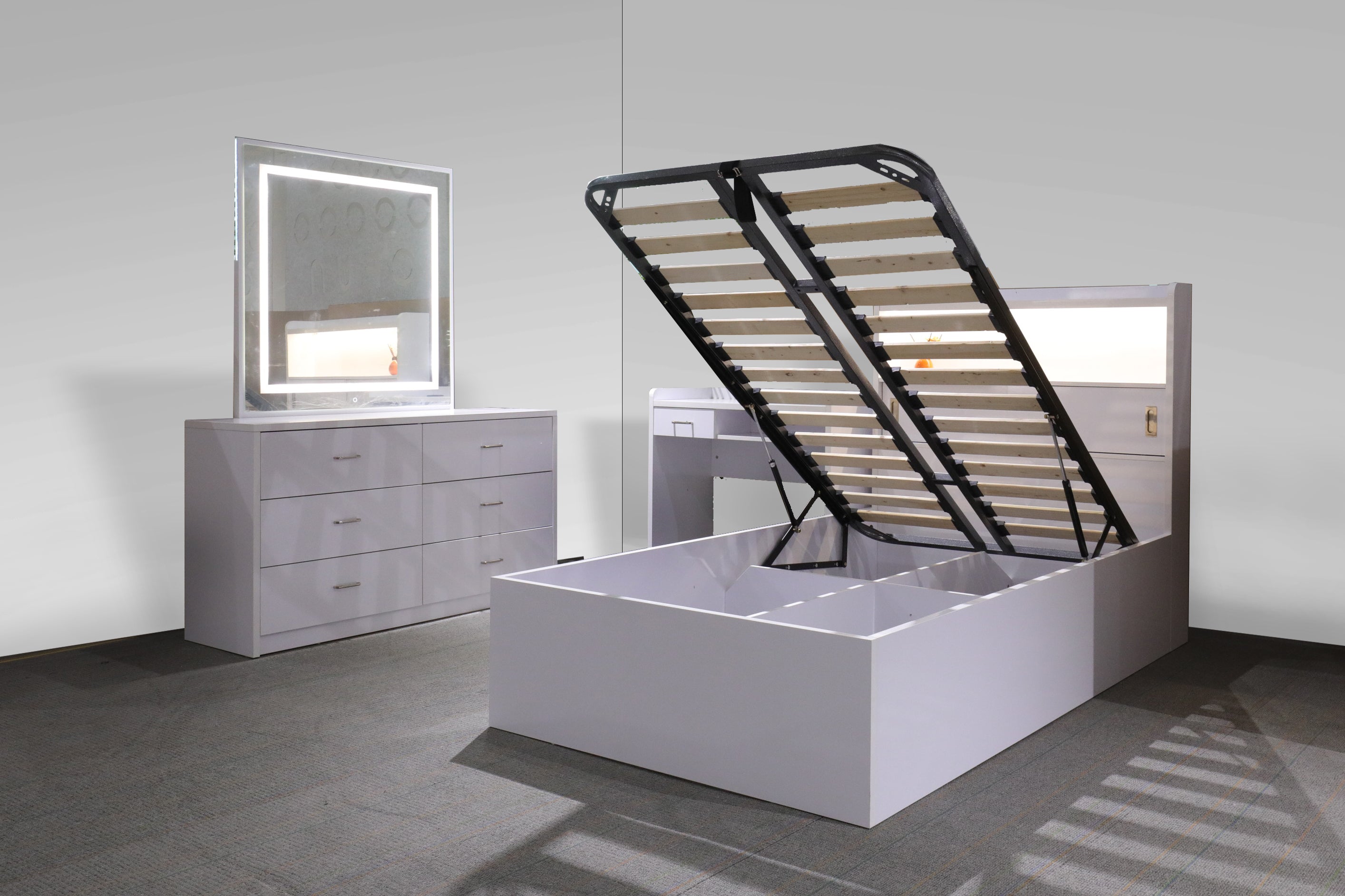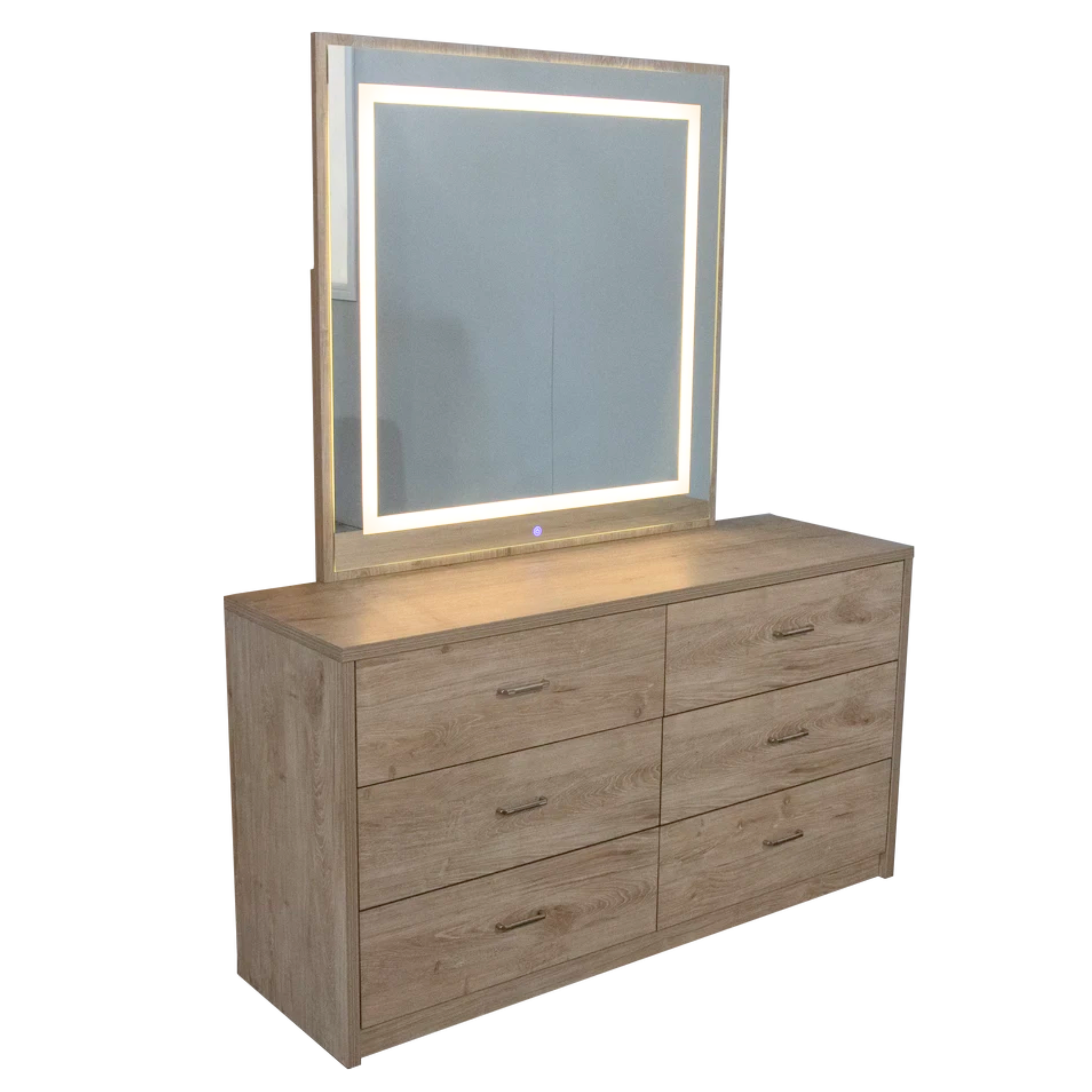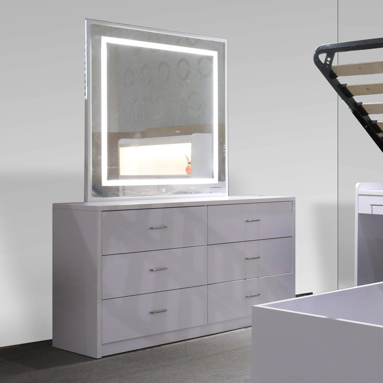 The dresser offers six full-sized drawers with smooth metal runners—perfect for storing clothing, accessories, and more. Paired with a matching LED-backlit mirror, it adds a soft, ambient glow that’s ideal for both mornings and evenings.
