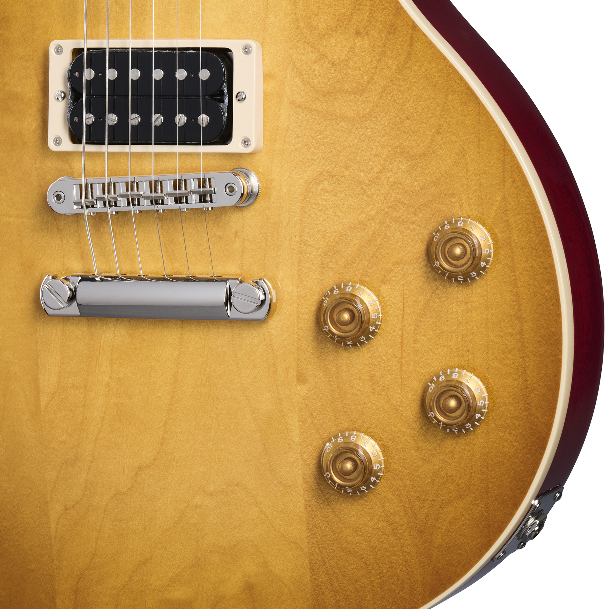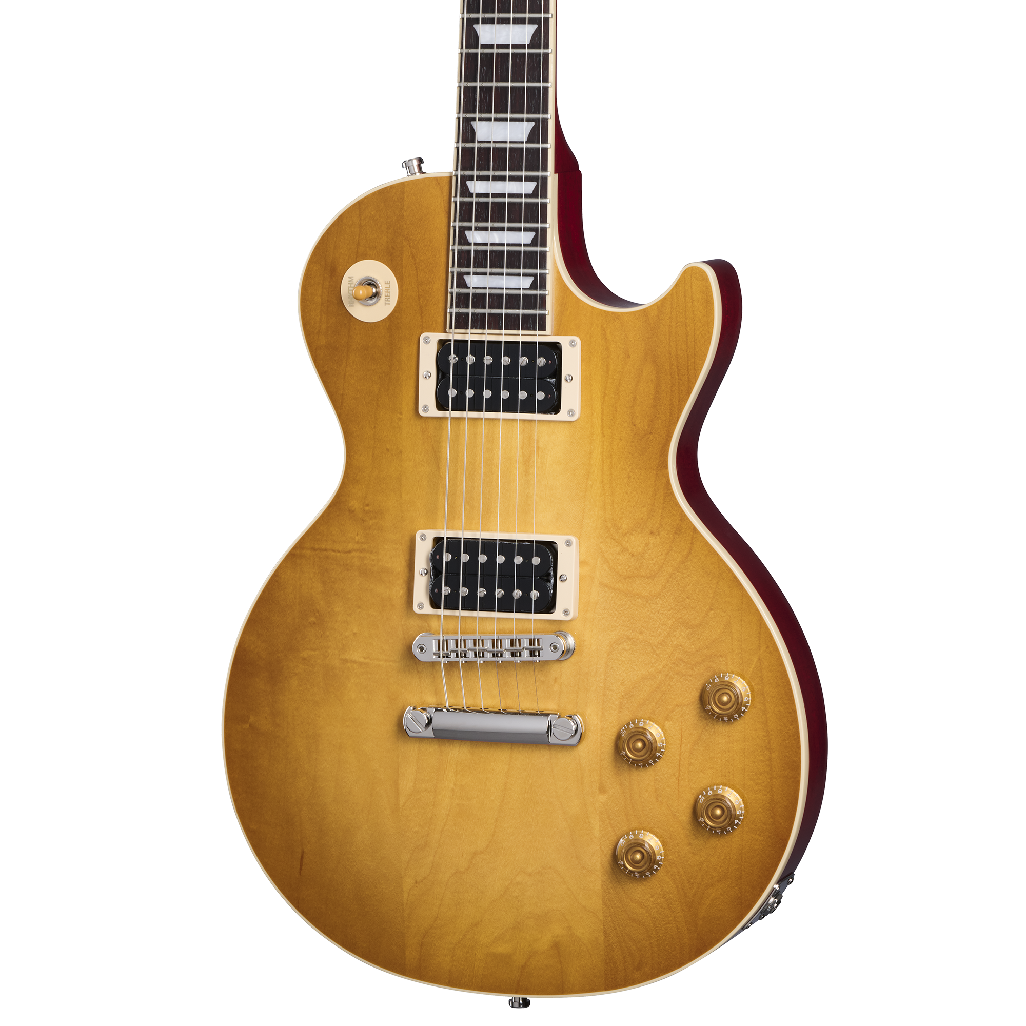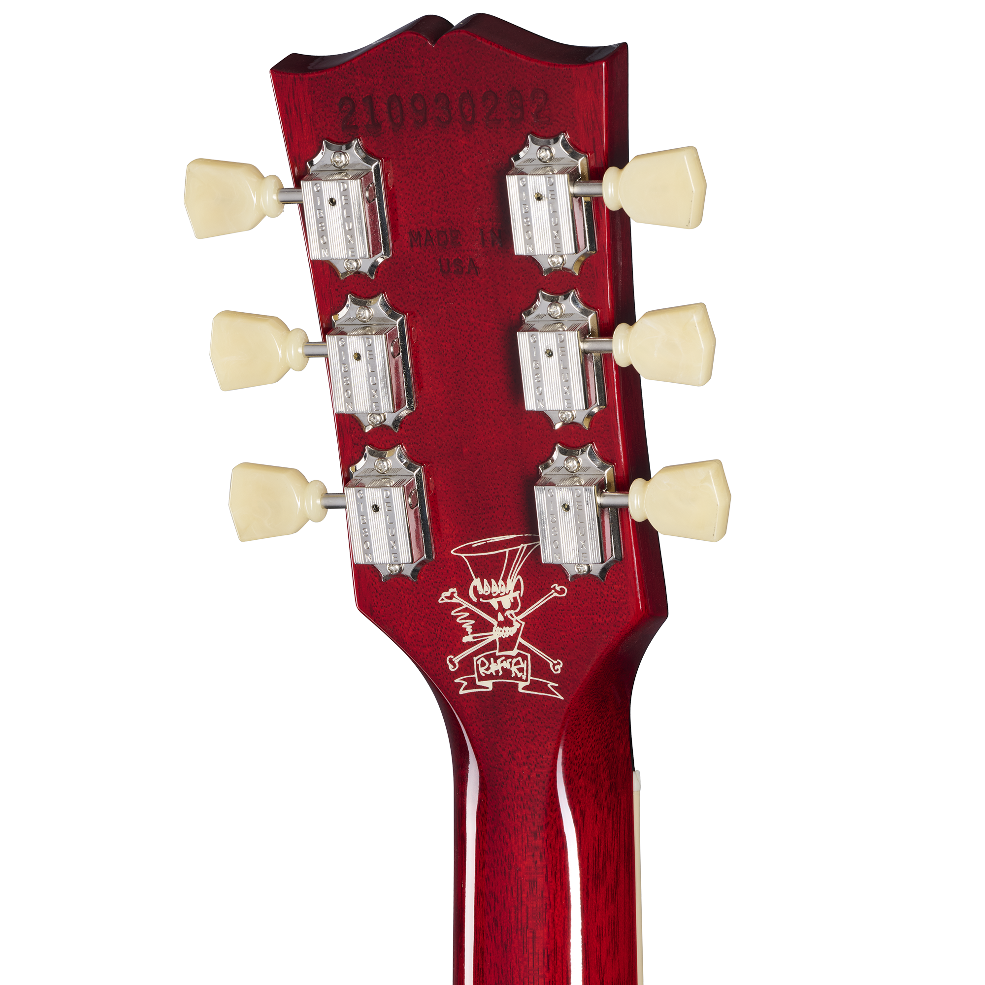 Guns N’ Roses and Velvet Revolver fans will undoubtedly be familiar with the guitar that Slash named “Jessica.” Jessica has been Slash’s main stage guitar since 1988. The original Jessica was a factory second and one of two Les Paul™ guitars that Gibson sent to Slash in the late 80s. Now Gibson is proud to introduce a new model based on Slash’s old favorite. Jessica features a three-piece plain maple top on a non-weight-relieved mahogany body and a mahogany neck with a 50s Vintage neck profile. Jessica is powered by a pair of Custom Burstbucker™ pickups with Alnico 2 magnets that are hand-wired to Orange Drop® capacitors. Originally a bright Cherry Sunburst, Slash had Jessica refinished, which is reflected, minus the considerable road wear on the original, in the gloss nitrocellulose Honey Burst with Red Back finish used on the new model. Slash’s signature is reproduced on the truss rod cover, and Schaller Strap Locks are preinstalled on the guitar. Other extras include a Slash pick set, a USA leather strap, a multi-tool, and a blank truss rod cover in the included hardshell case.