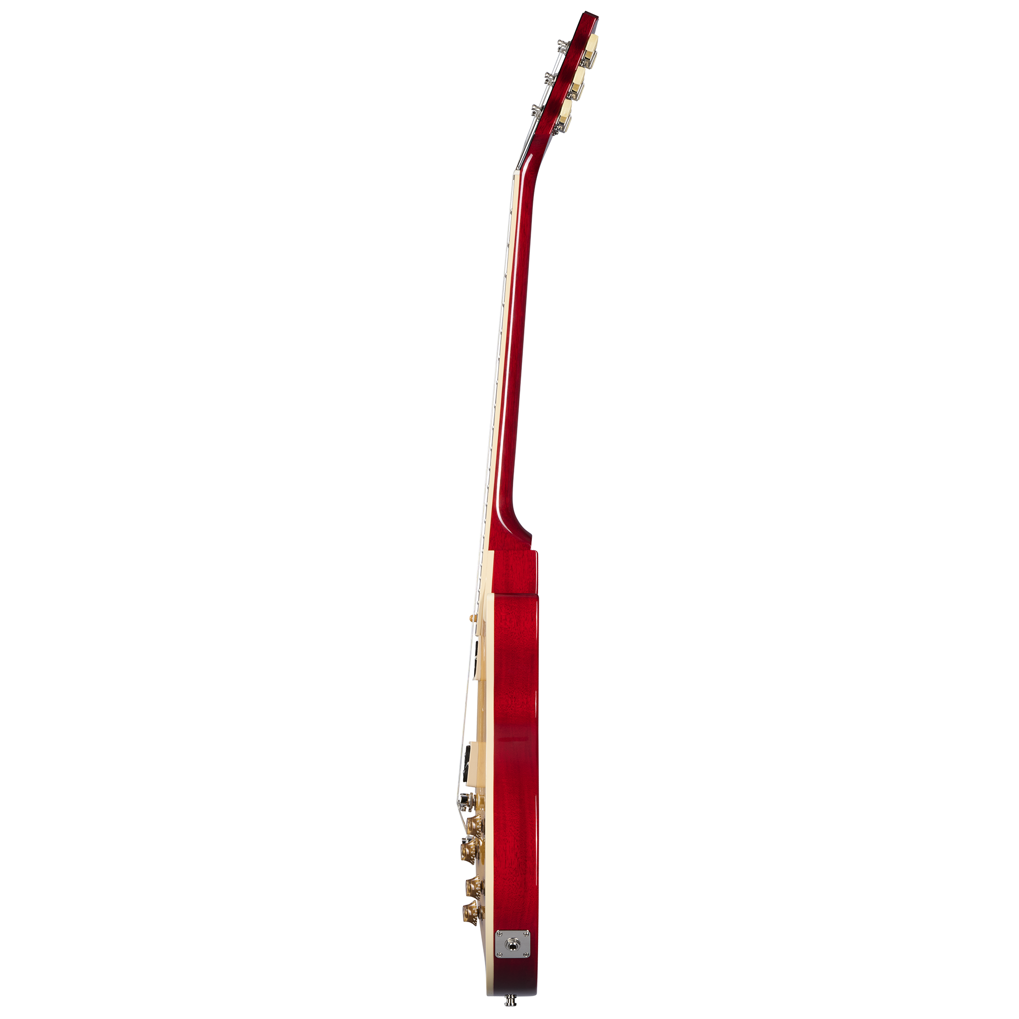 Non-weight-relieved mahogany body, three piece maple top, mahogany neck with rosewood fretboard and 50s Vintage neck profile, Custom Burstbucker pickups with Alnico 2 magnets, hardshell case