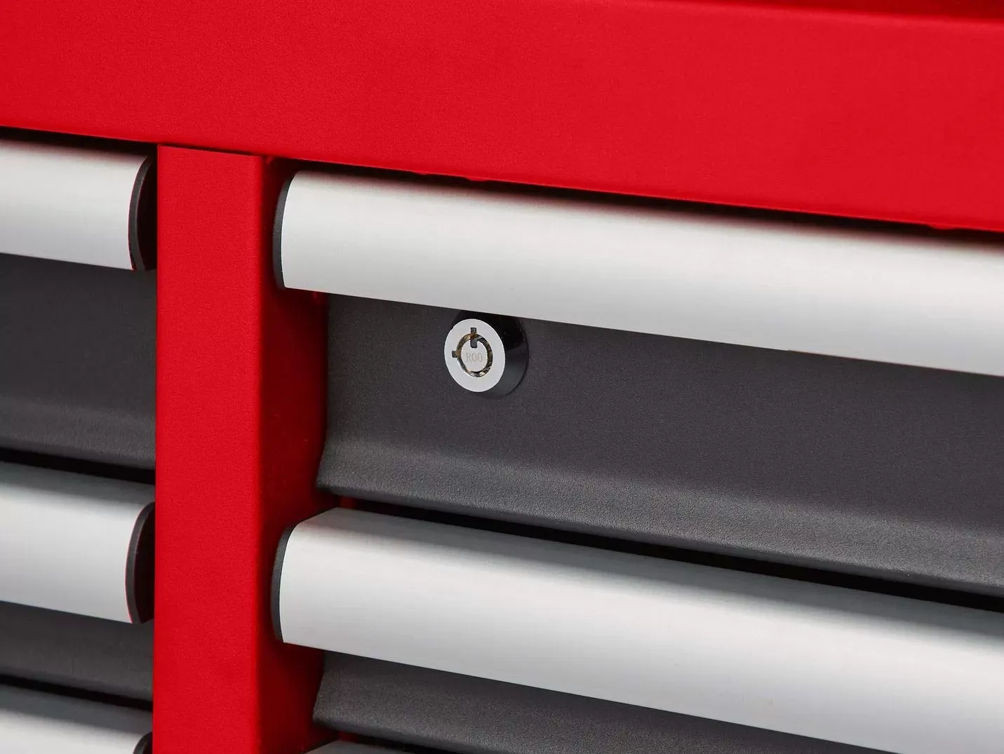 - Features: Ball Bearing Slides, Deep Chest (20 in. or more),Lid Gas Struts, Lockable, Secure Open Lid, Soft Close Drawers, Welded Seams, Wheel Locks
