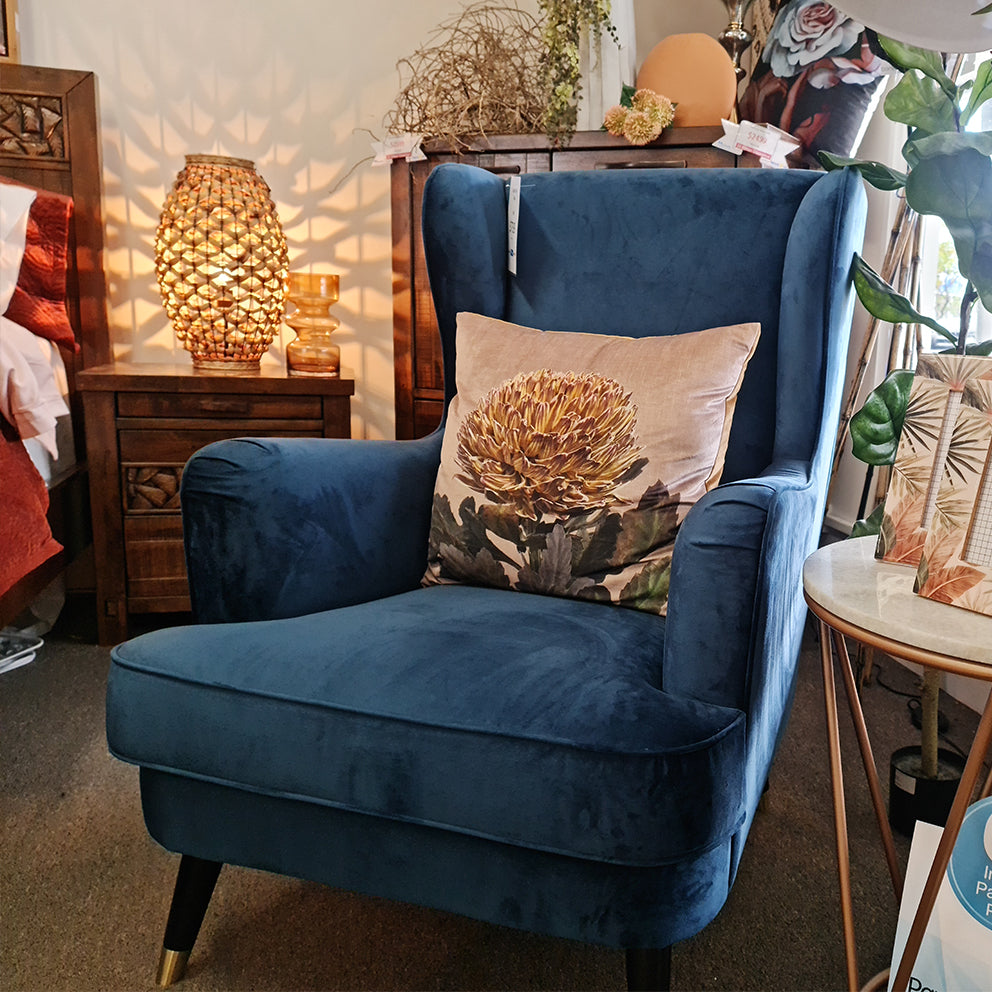 The Cooper Armchair is the perfect blend of classic elegance and modern comfort. Featuring a high back and winged arms, this armchair offers exceptional support and a touch of traditional sophistication. Its velvet cover adds a luxurious feel, making it a standout piece in any living space. Experience the plush comfort and timeless style of the Cooper Armchair, an ideal addition to your home decor.