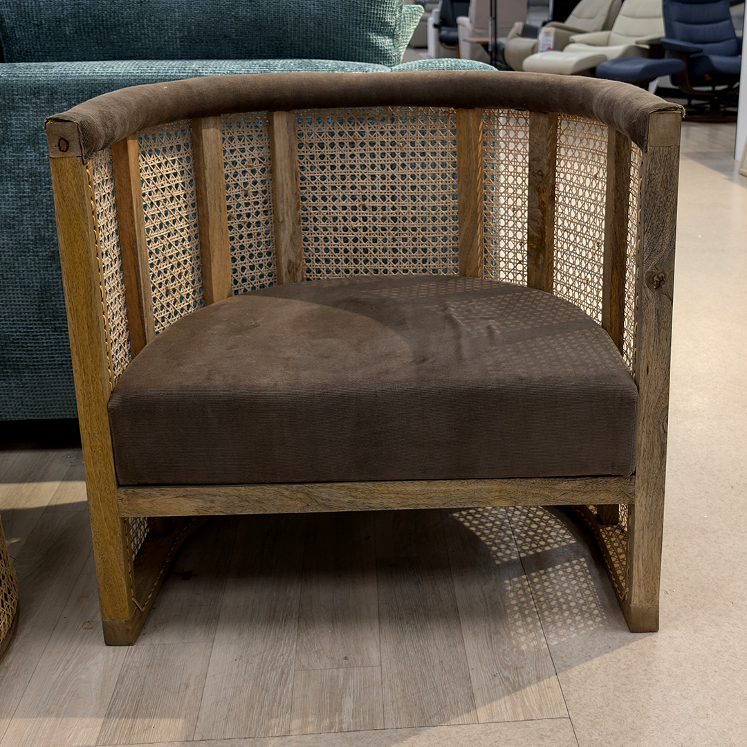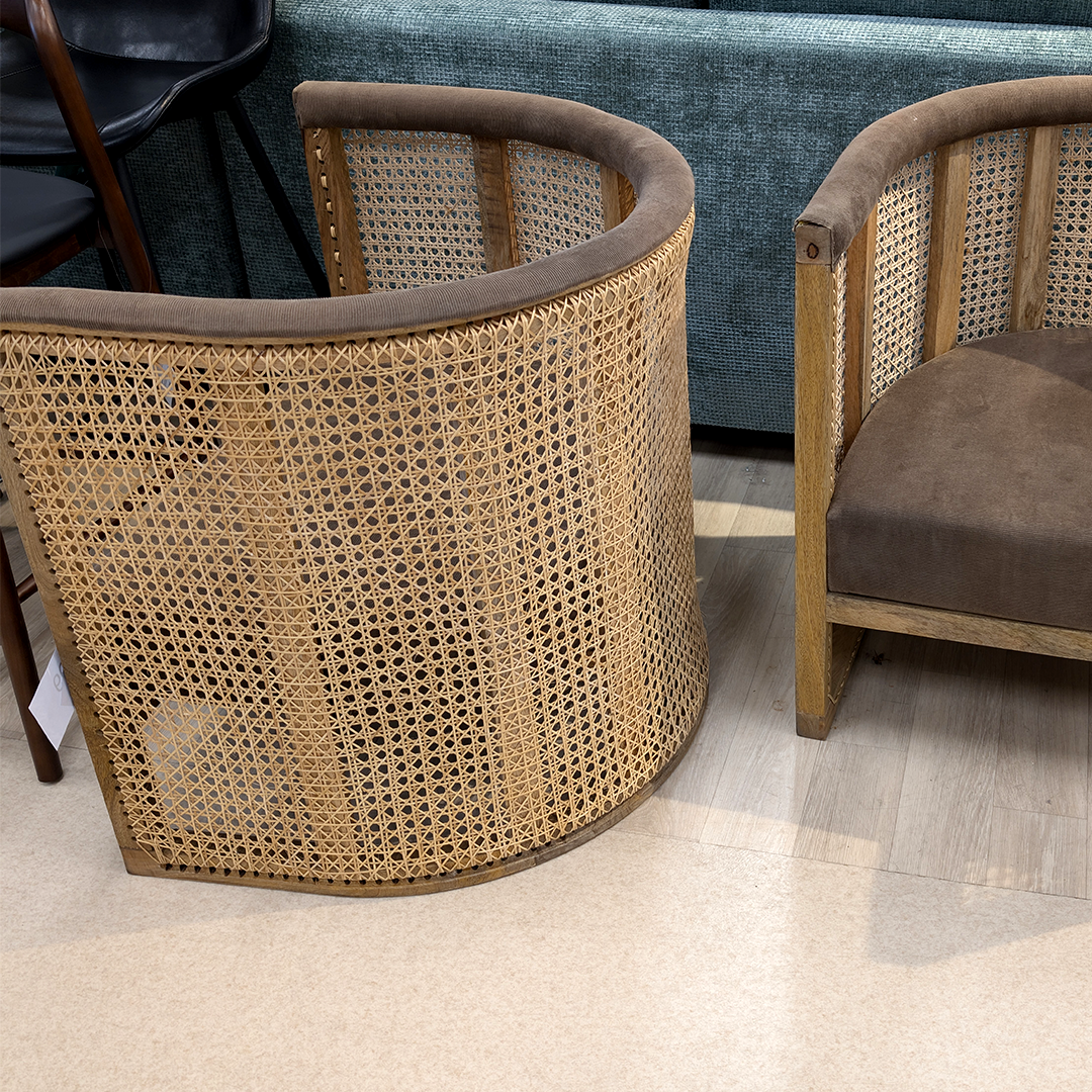 Large Sturdy Cane Tub Chair with Soft Fabric Seat