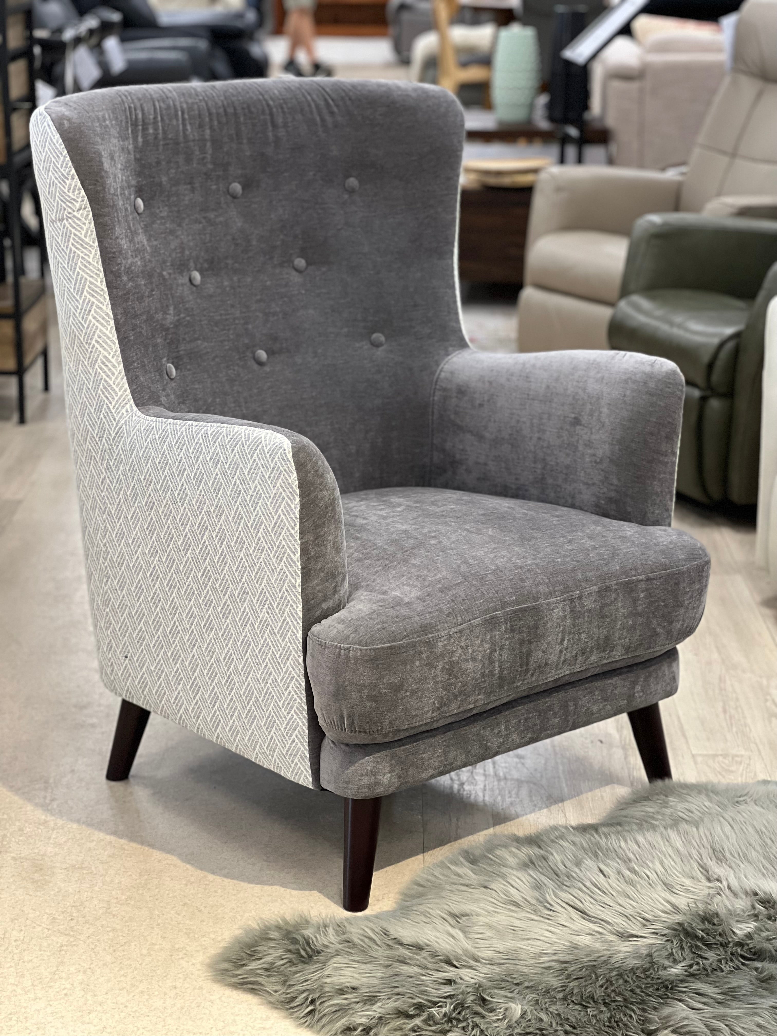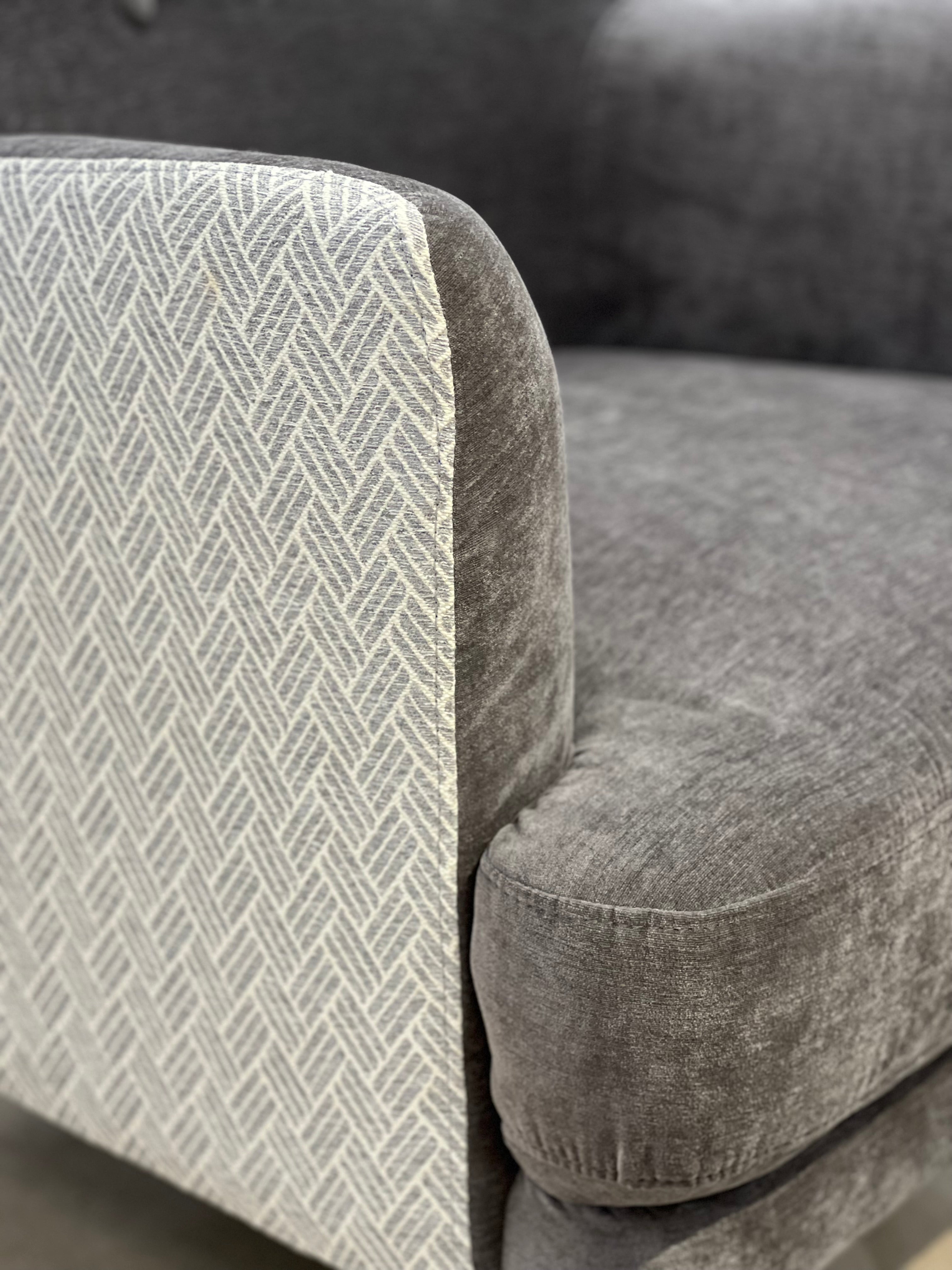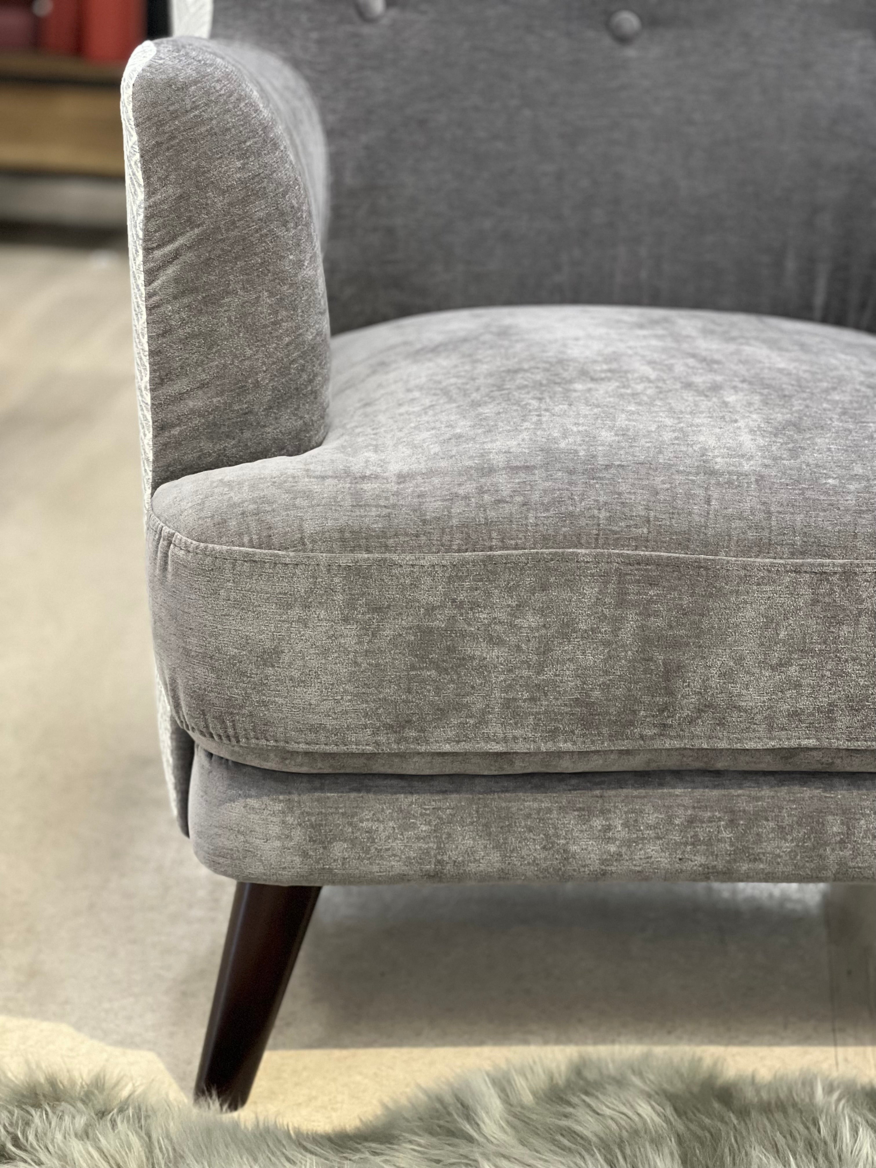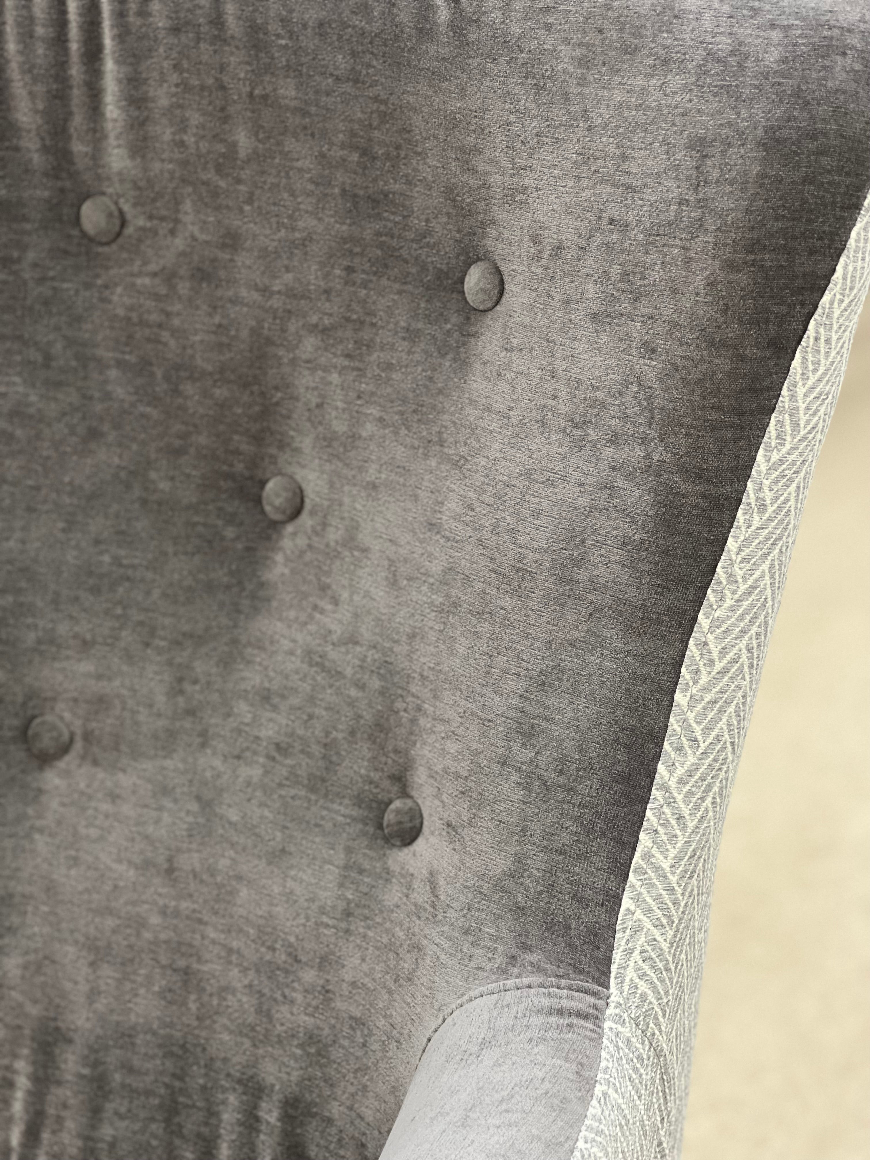 The High Back Melrose Armchair combines classic elegance with contemporary charm. Featuring exquisite buttoned tufting and crafted with a luxurious two-tone fabric, this statement piece adds depth and sophistication to any space. Available in two refined colour options—Sky and Dove—the Melrose effortlessly complements both modern and traditional interiors, offering a timeless touch of luxury and comfort.