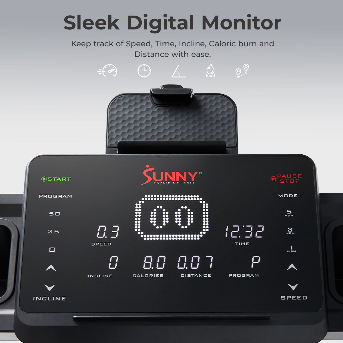 With an impressive incline capability of up to 50%, this treadmill takes your workouts to new heights, allowing you to target different muscle groups and intensify your training for unparalleled results. The dynamic steep dual action incline decline training and 12 programs offer a diverse range of options, from challenging hill climbs to invigorating interval sessions, ensuring a workout that suits every fitness level. The responsive LED console provides real-time data on speed, distance, incline, and calories burned, putting you in control of your fitness journey. Built with premium materials, the treadmill boasts a sturdy frame and a robust motor for durability and reliability during even the most demanding workouts. The spacious running surface, whisper-quiet operation, and space-saving design make this treadmill the ultimate choice for those seeking a high-performance, versatile, and space-efficient fitness solution. Elevate your fitness experience with our High Incline Treadmill and redefine the way you train.